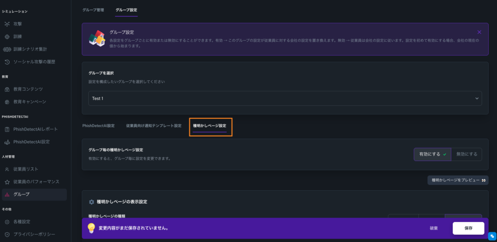 ・グループ > グループ設定 > グループを選択 > PhishDetectAI設定 > 有効にする